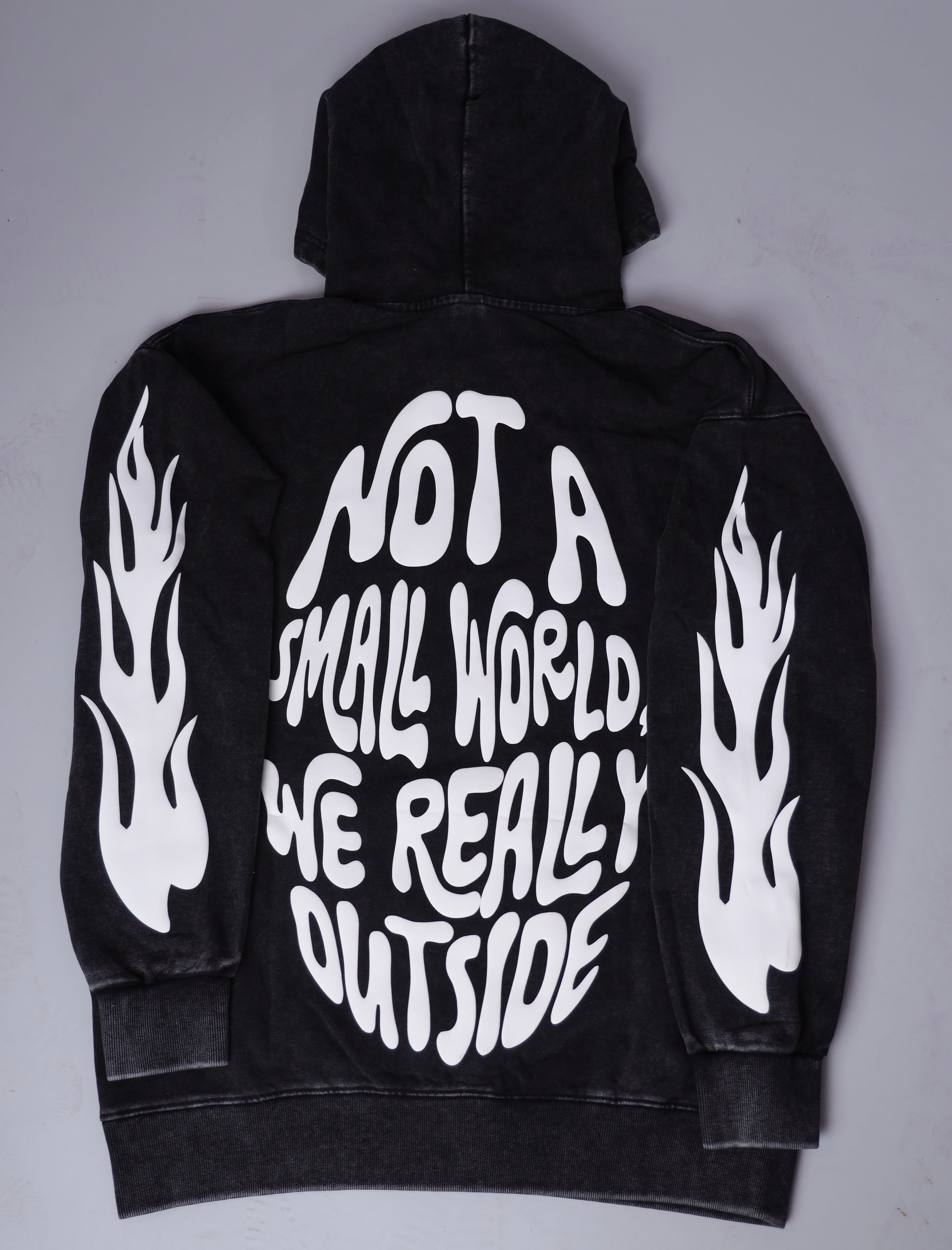 Elevate your streetwear game with this vintage-washed hoodie, designed for both comfort and bold style. The charcoal gray, stone-washed fabric gives it a relaxed, worn-in aesthetic, making it a go-to for casual everyday wear.